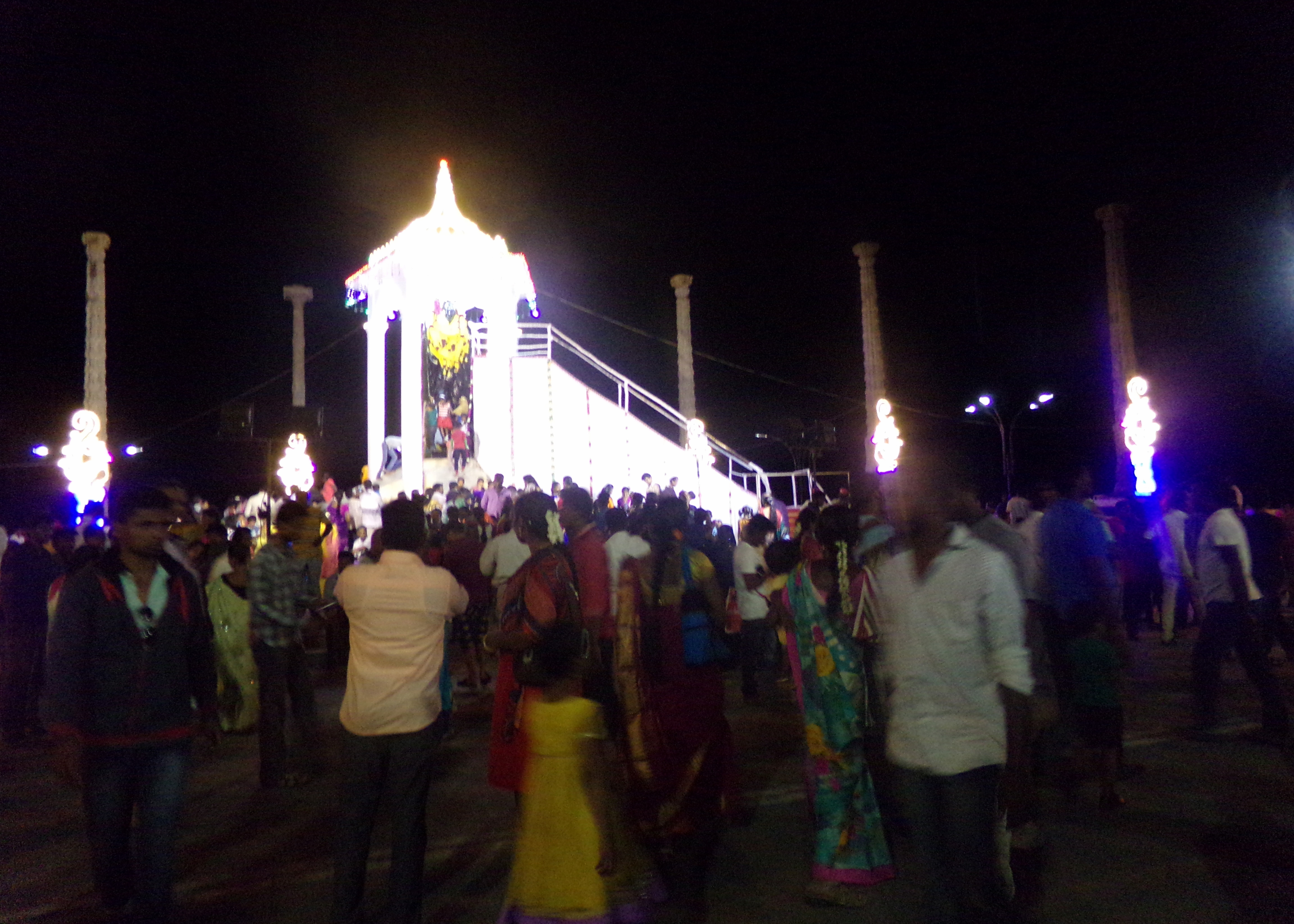 La Promenade n'est pas une digue comme en France ou en Belgique. C'est con, mais on à l'habitude que ce soit un espace touristique avec des restau, des bars et des commerces... Là, ce n'est pas vraiment le cas. Il y a quelques magasins de "handcraft", 2 ou 3 restaurants et voilà. En revanche, sur la Promenade, il y a la statue de Gandhi qui tourne le dos à la mer. Il y a toujours un monde fou qui prend cette statue en photo et on y a pas coupé, non plus. Truc sympa, c'est qu'on a fait en sorte d'être en Inde pour l'anniversaire de Gandhi (le 02/10) et on a donc eu la chance de voir les célébrations liées à cet événement (harmonie à la française, colliers de fleurs sur la statue, spectacle de danse traditionnelle, visite de Mme la Lieutenant Gouverneur...).