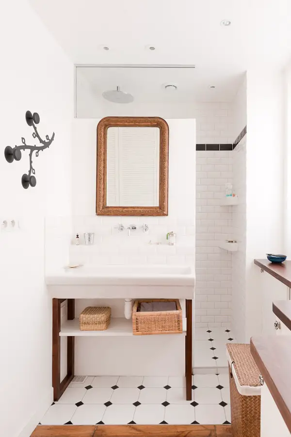 Ces idées sont vraiment sympas, merci pour le partage 😉 C’est vrai qu’il suffit de parfois pas grand chose pour tout changer ! Ici ma salle de bain est plutôt d’une taille respectable mais très (trop classique). Comme je n’avais effectivement pas le budget pour une vraie grosse rénovation, j’ai simplement habillé 2 des murs avec un lambris en bois (dans une essence imputrescible spéciale pièce humide du Robinier faux acacia). Cela ne m’a pas coûté cher vu la surface que j’avais à recouvrir et je suis, en toute modestie, vraiment contente du résultat. Ça donne tout de suite du cachet à la pièce !