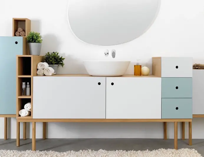 Vous pouvez donc par exemple: Changer de carrelage pour un modèle plus contemporain, repeindre les murs, changer le sol pour un revêtement en PVC (et pourquoi pas prendre un motif carreaux de ciment, pour un effet déco garanti), changer le meuble sous vasque, juste changer la vasque parce qu'il y a des modèles super sympas et pas trop chers, remplacer les luminaires...
