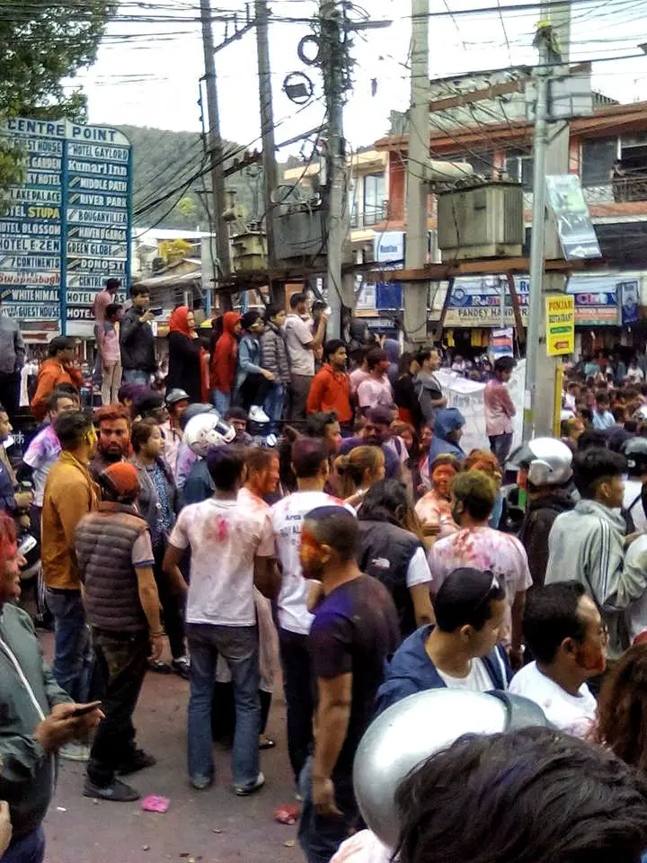 On était un peu dégoutés parce que notre visa en Inde se terminait 2 jours avant Holi... Mais Holi est célébré aussi au Népal. Holi c'est la fête des couleurs. Vous connaissez peut-être les Holi Run en France. C'est un événement qui s'est librement inspiré de cette fête hindoue. Holi, c'est la célébration du printemps. Les gens se jettent de la poudre colorée et de l'eau. On a eu du bol, c'est tombé dimanche passé et il a fait relativement beau une partie de la journée. On a pu se faire colorer. On a pu colorer les gens aussi. Il y avait des concerts un peu partout sur Lakeside. Bref, on a passé une journée au top. On a bien rigolé. Les gens, touristes comme Népalais, respiraient la joie de vivre. C'était top ! Si un jour vous avez l'occasion de fêter Holi, on vous le conseille vivement ! C'est vraiment bon enfant ! (Prévoir des fringues qui se craignent rien).