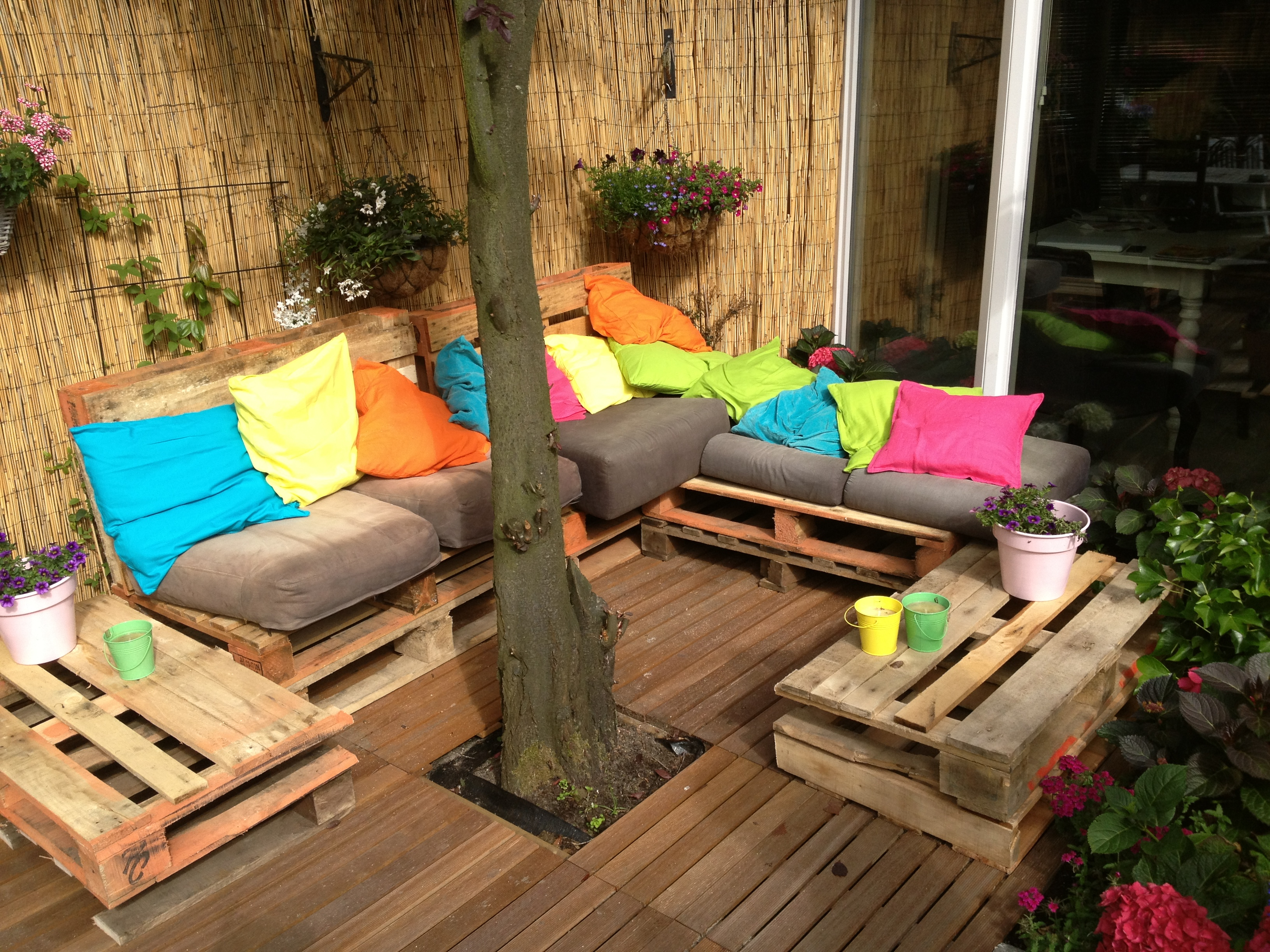 On peut bien entendu parler des palettes, qui ont toujours autant la côte. Peut-être même un peu trop parce qu'elles ne sont plus si faciles à trouver gratuitement. Ce qui est intéressant avec les palettes, c'est qu'elles se plient presque à toutes vos envies. Vous pouvez juste les traiter contre l'humidité et les insectes pour garder cet aspect brut si significatif. Ou vous pouvez aussi les peindre pour apporter une touche de couleur à votre extérieur!