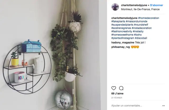 Vous le savez maintenant, je passe "beaucoup" de temps sur Instagram. Ca me permet de partager mon quotidien en Asie mais aussi de faire de jolies découvertes (je vous en dis plus bientôt!). J'aime aussi ce réseau social car c'est un formidable centre d'inspiration. On y trouve pour tous les goûts et dans bien des domaines. Aujourd'hui, notre regard va se porter sur les plantes, et plus précisément, les plantes suspendues. Je me suis dit que mettre un peu de verdure dans votre intérieur tout en jouant avec les volumes ça pouvait vous plaire!