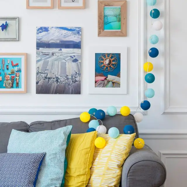 Les boules multicolores d’une guirlande apportent du peps dans votre déco. C’est idéal pour rehausser un mur ou un meuble un peu trop classique.