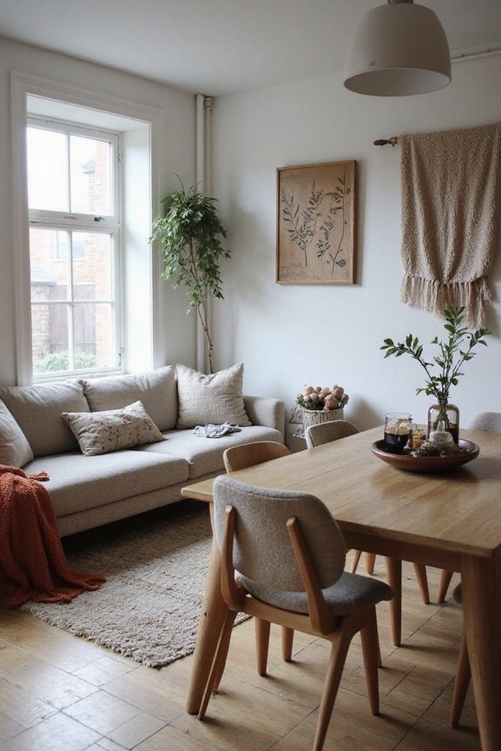 Si vous avez l’impression que votre pièce est trop petite, il faut éviter de la surcharger. Même si vous souhaitez une déco qui vous ressemble. Misez sur la simplicité et la sobriété. Vous n’êtes pas dans une galerie d’art mais à table quand vous passer du temps dedans. Vos convives devraient plus s’intéresser au contenu de leur assiette qu’à la déco de vos murs. Choisissez avec soin les éléments de votre déco et ils se suffiront à eux même: une belle suspension, des stores avec quelques détails soignés, un joli vase…