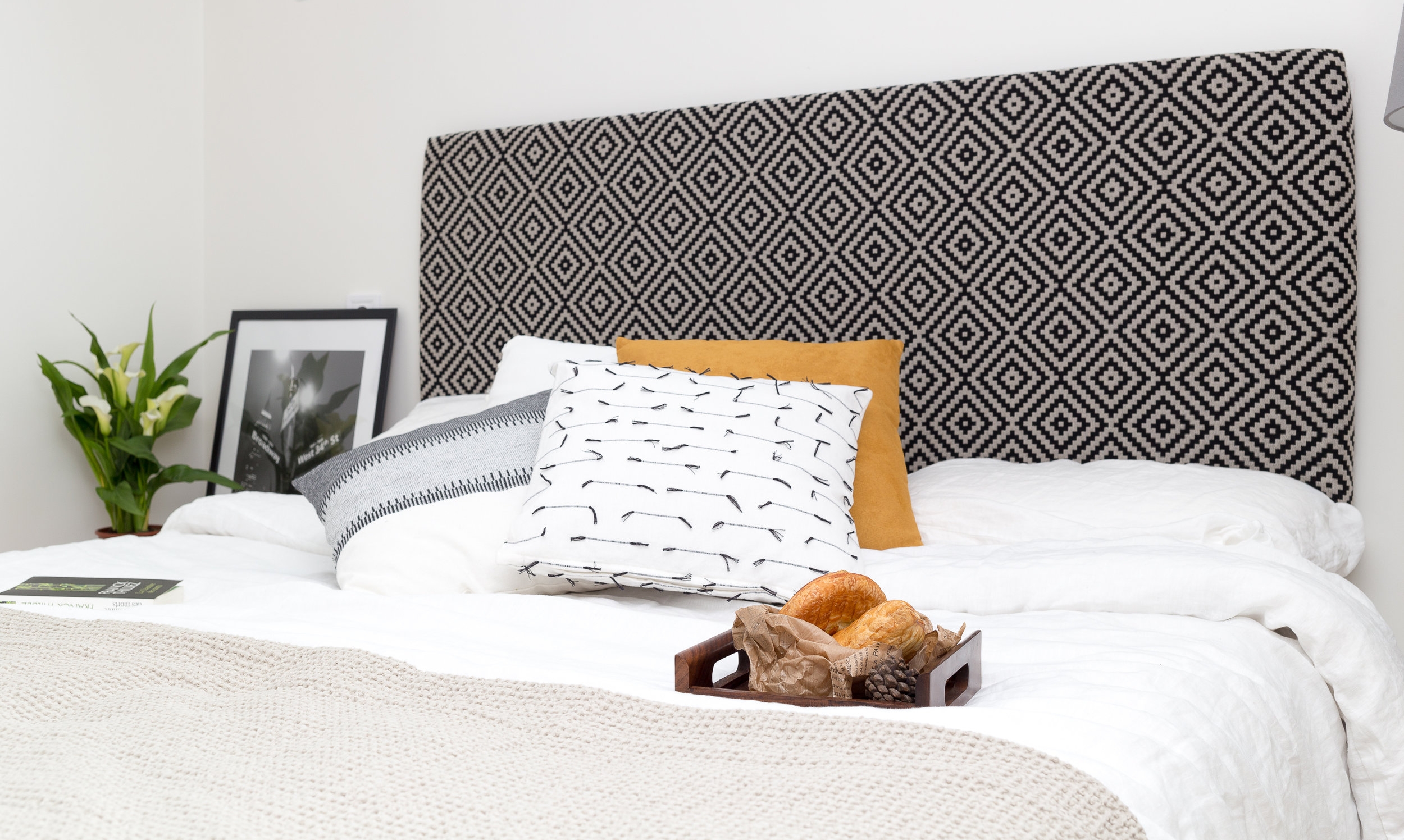 Deuxième point qui m’a beaucoup parlé, c’est l’habillage de la tête de lit. Dans la grande majorité des cas, une tête de lit est un meuble qui ne change pas esthétiquement parlant. On l’achète, on la pose et quand on en a un peu marre, on fait avec ou on change. Chez AIDAN HOME c’est différent. La structure en mousse s’habille au gré de vos envies grâce à des housses aux motifs contemporains.