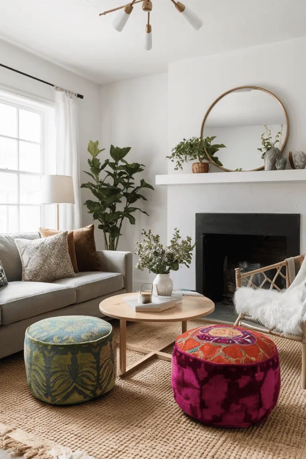 Ces assises complémentaires sont intéressantes en déco à plus d'un titre. Dans un premier temps, elles permettent d'offrir plus de places assises dans le salon. C'est nickel quand vous recevez occasionnellement du monde. Les enfants vont prendre plaisir à s'asseoir près du sol sur de gros coussins. Elles peuvent aussi apporter une touche de couleur ou de matière, une manière de peaufiner votre déco avec les détails. Enfin, ce qui est intéressant dans ces solutions d'appoint, c'est qu'elles se rangent facilement sous la table, dans un placard, etc. C'est un bon complément au canapé et aux fauteuils, qui ne prend pas de place.