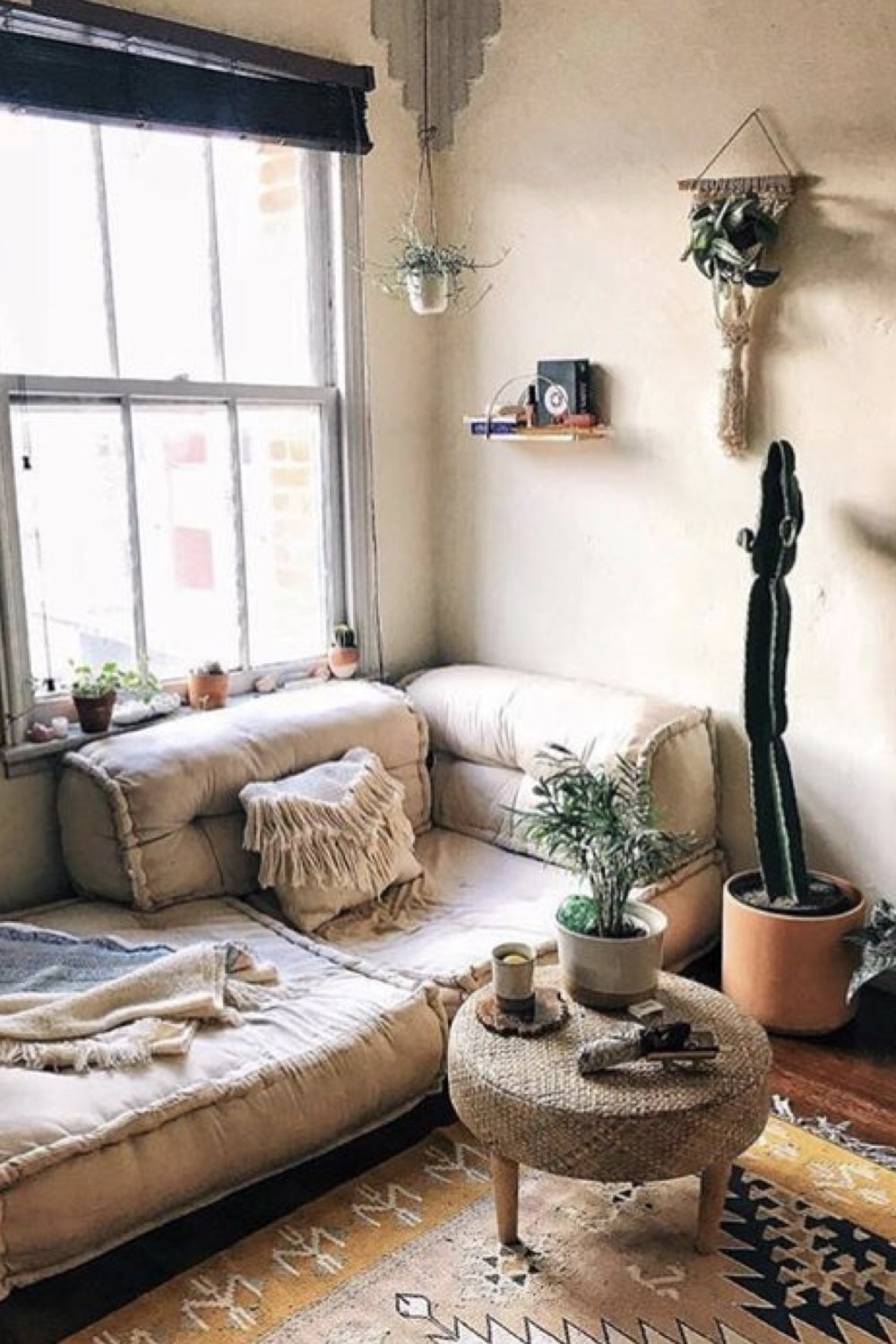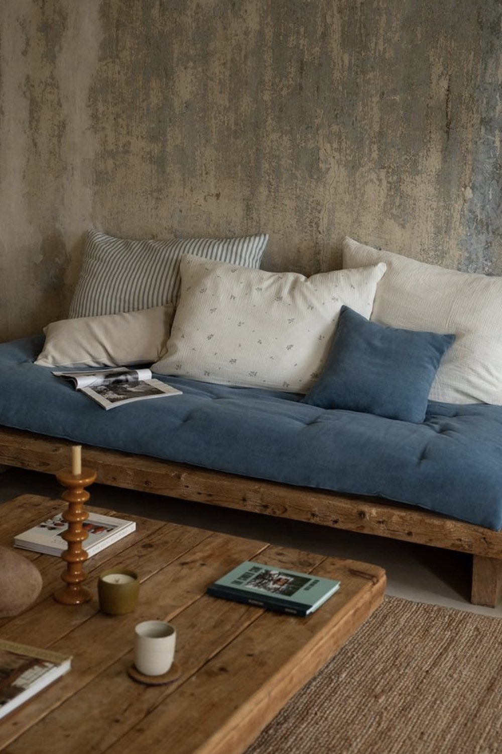 En Asie, on est souvent assis sur ce qu'on appelle des galettes vietnamiennes (non, je ne parle pas de bouffe), ce sont des matelas assez durs, colorés, qui se replient soit en triangle, soit en carré. C'est assez confortable, même pour dormir dessus. Niveau déco, ça donne un effet bohème assuré au salon.