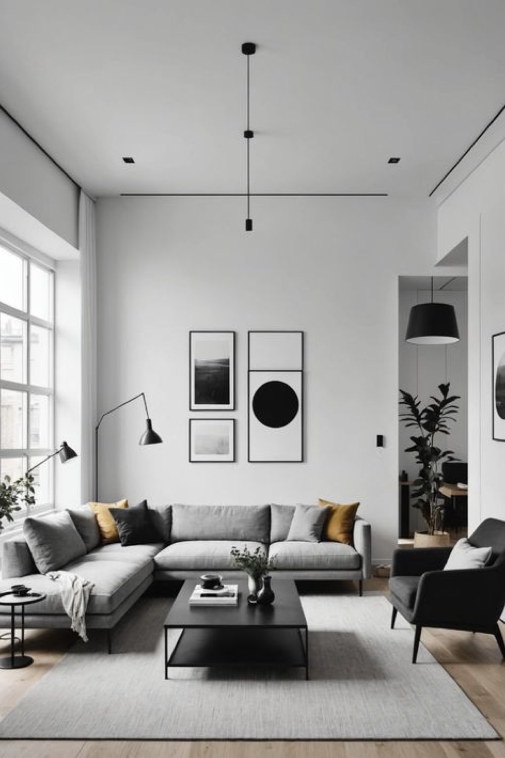 Gris + jaune - un salon aux couleurs de l'année 2021 par Pantone