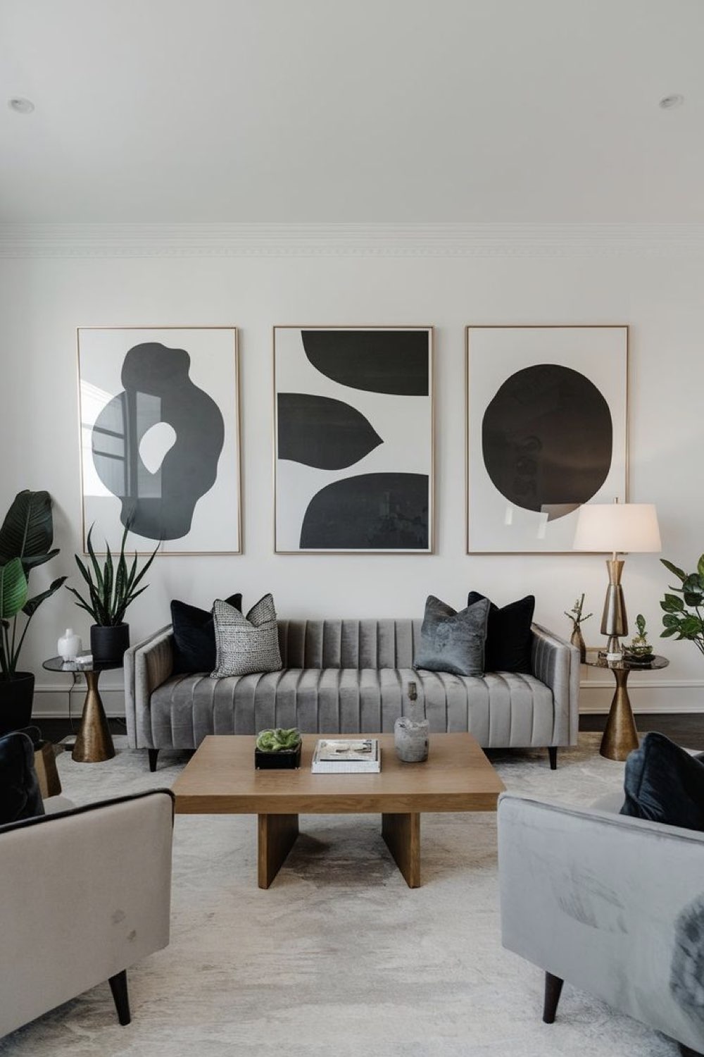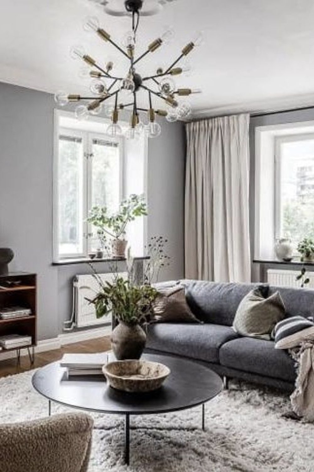 Le gris, clair ou sombre, peut aussi être la couleur d'un salon classique chic. En plus d'une idée de douceur, on va chercher à rendre la pièce plus élégante. Voilà différentes manières d'y arriver:
