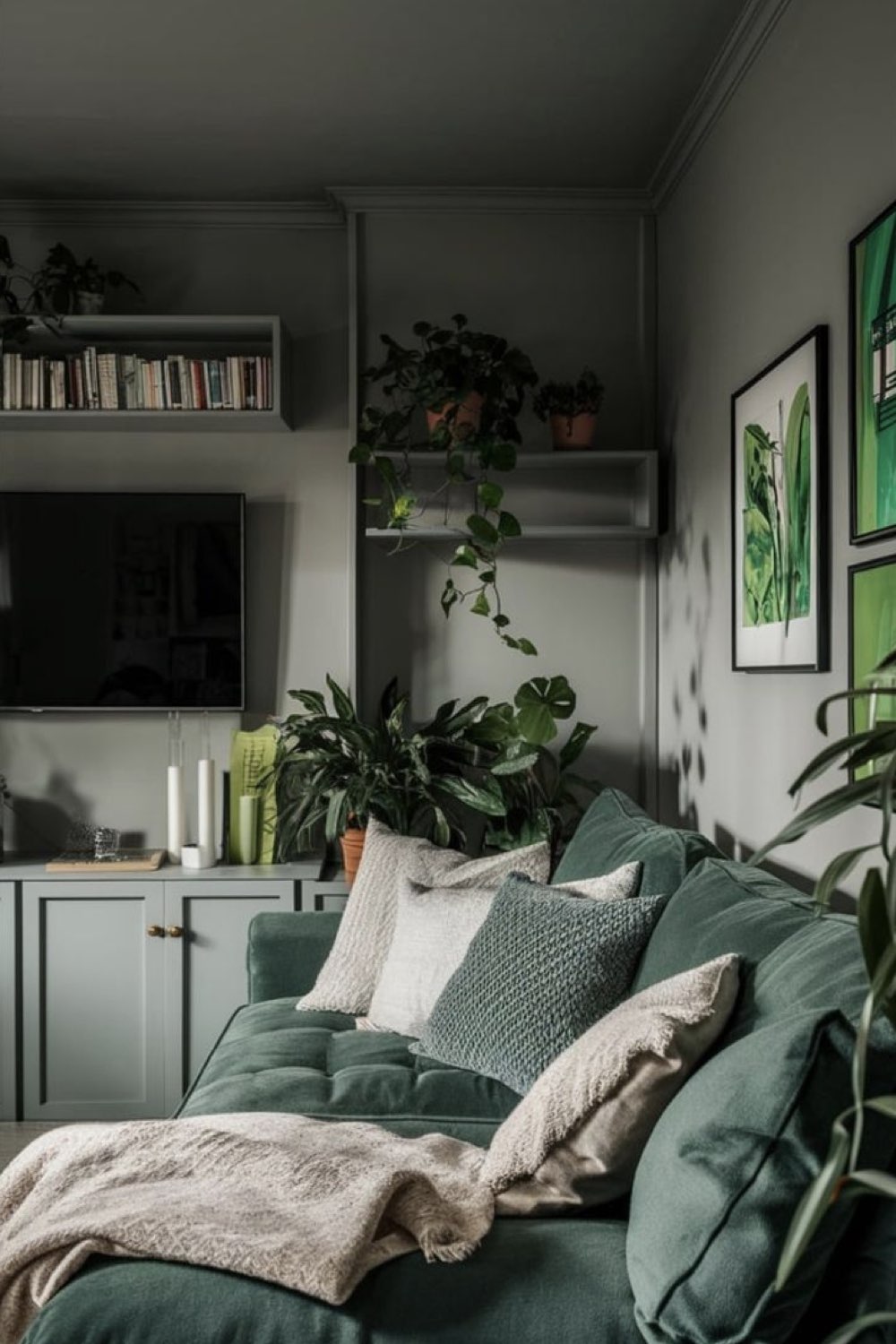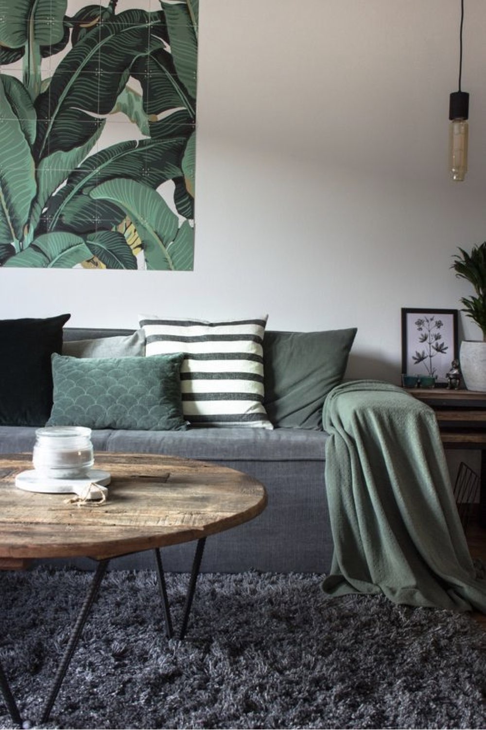 Probablement mon association de couleurs préférée: le gris et le vert. J'aime beaucoup les décors naturels que je trouve ressourçants et relaxant. La touche de vert peut facilement être mise en oeuvre grâce à des plantes un peu partout dans la pièce. Et comme le rose, je trouve que le vert associé au gris est un mix & match feel good qui fait du bien au moral!