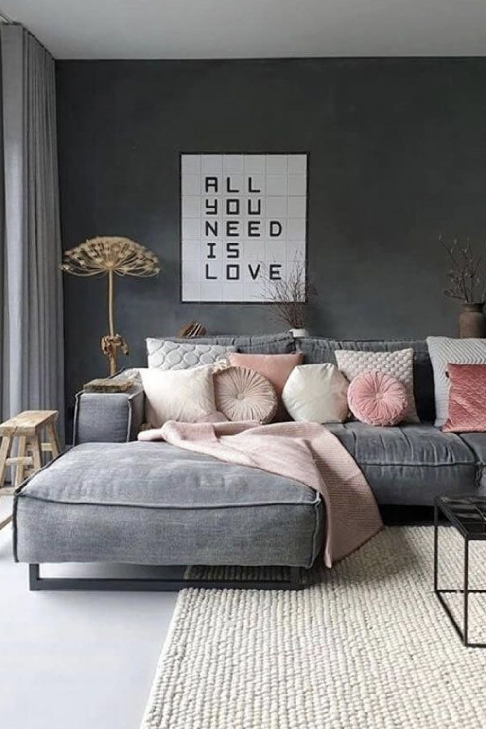 Le gris parfois peut sembler triste et morne, surtout quand on est en plein hiver et que le moral n'est pas vraiment là. Pour dynamiser un peu votre salon, n'hésitez pas à faire le choix du rose. Cette couleur relative dans notre société et notre culture à la féminité est réconfortante et douce. Ca ne peut pas faire de mal au moral!