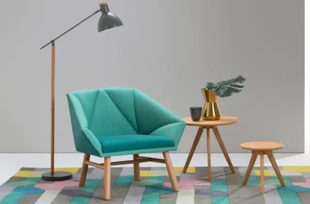 Pour casser une déco trop linéaire et un peu trop monotone, quoi de mieux que la géométrie? Elle ne se retrouve pas exclusievement sur le papier-peint, bien au contraire. On peut aussi la retrouver dans le mobilier, notamment le fauteuil. On ajoute à cela une couleur acidulée pour casser la tristesse et le tour est joué. Le salon a une nouvelle faicheur.