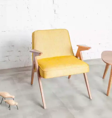 Si vous aimez la déco mid-century, vous aimerez ce fauteuil au design polonais. Ce qui me plait dans ce fauteuil? Ce sont ses accoudoirs très différents de ce qu'on voit habituellement.