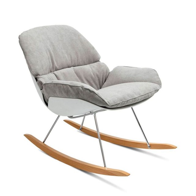 On a commencé cet article avec un rocking chair, on le termine avec un rocking chair mais au design différent parce que son assise est composée de mousse et de tissus pour un confort renforcé.