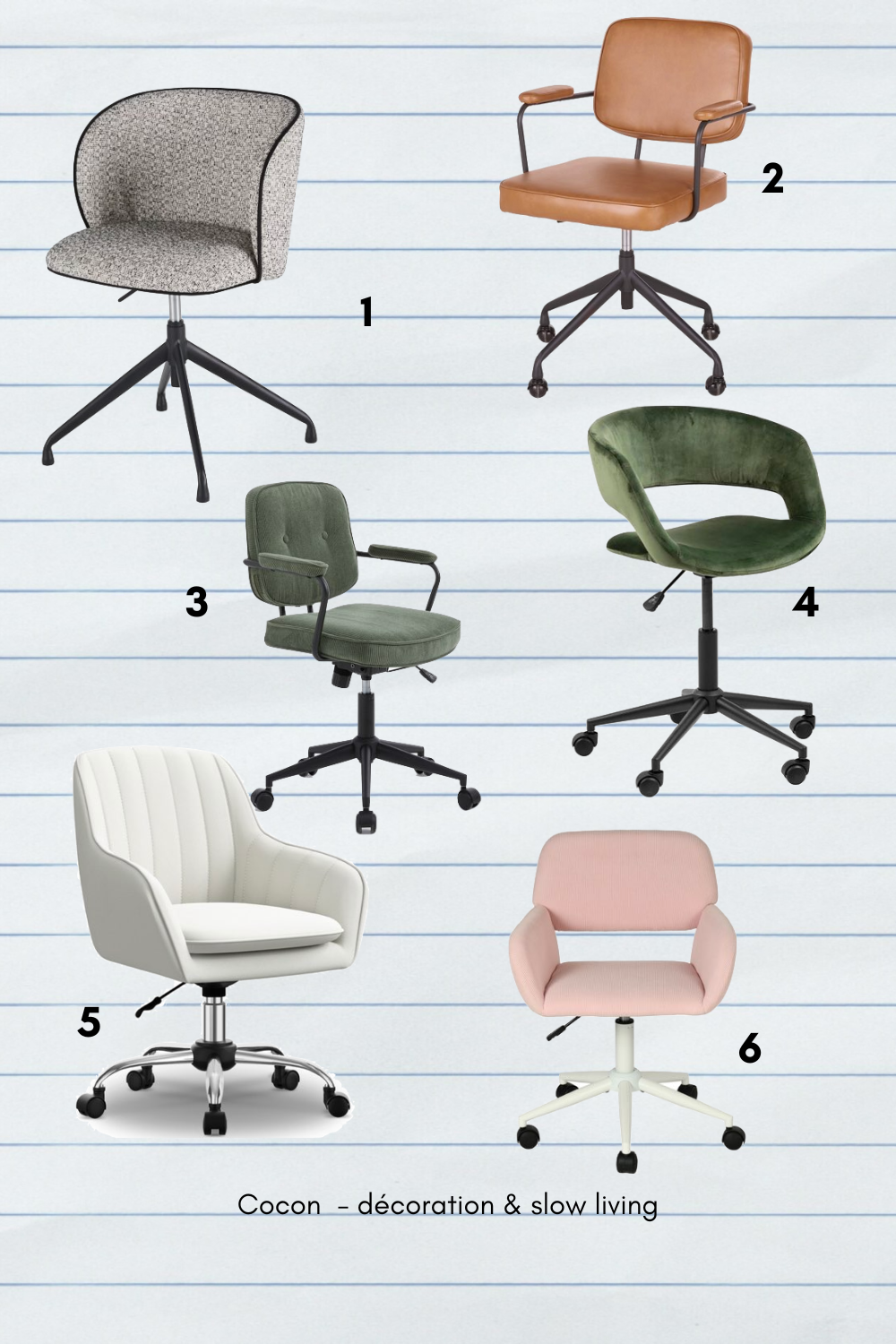 Les fauteuils de bureaux ne sont plus nécessairement moches. Il en existe encore évidemment. Mais depuis quelques années, ce sont des assises qui se veulent plus déco. On trouve facilement des fauteuils colorés, avec différents textiles (cuir, velours...) et des accoudoirs aussi esthétiques que pratiques.