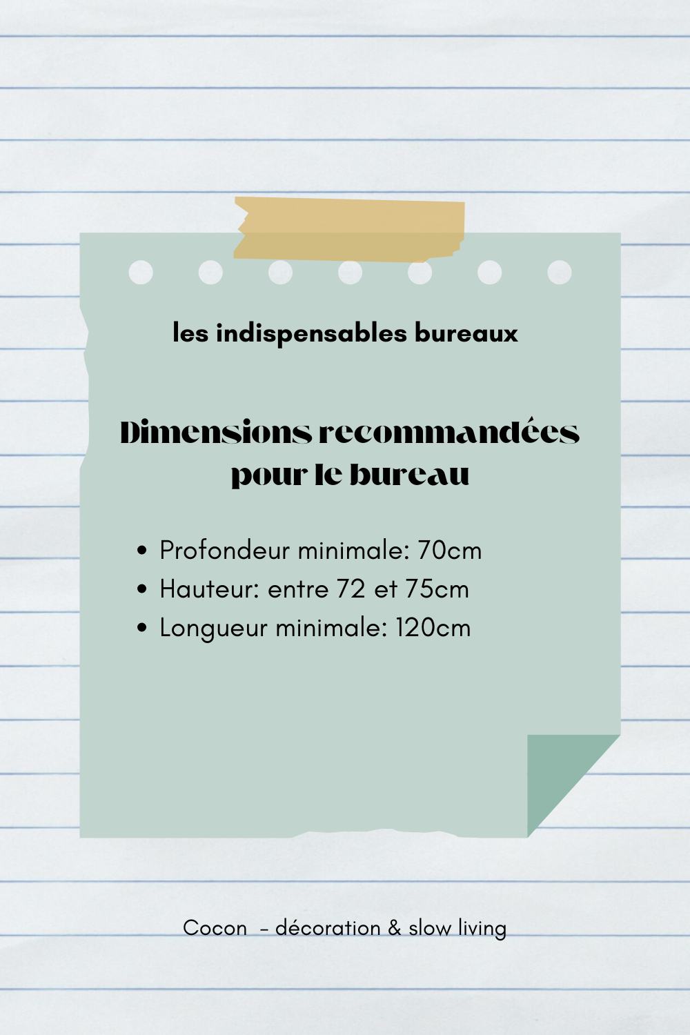Les dimensions à privilégier pour votre nouveau bureau sont les suivantes: