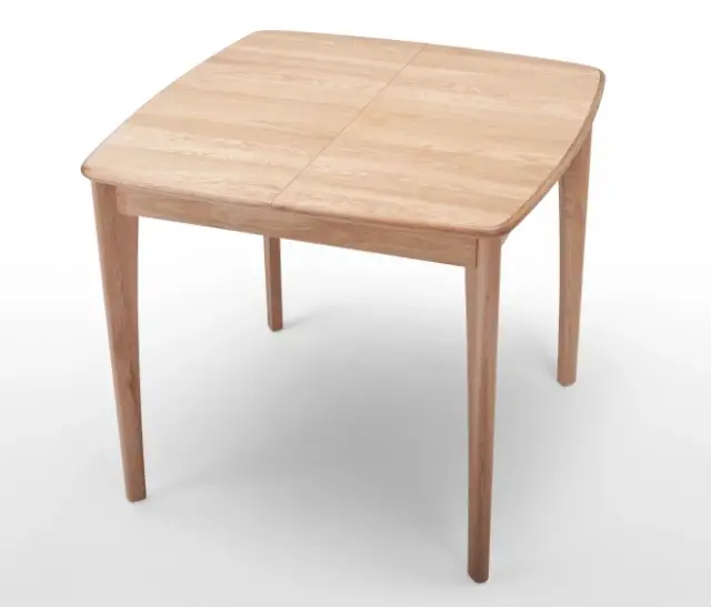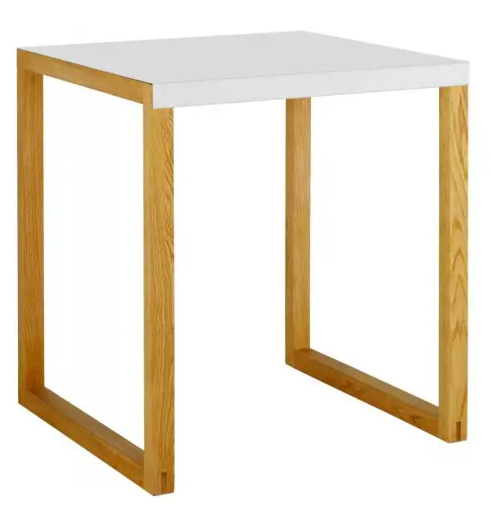 On débute cette sélection par une table carrée, au design simple mais pratique. Son plateau en acier et ses pieds en chêne lui donne un aspect minimaliste et épuré, pour ne pas avoir à surcharger la décoration, notamment si vous avez une petite cuisine.