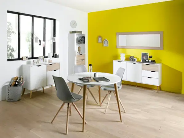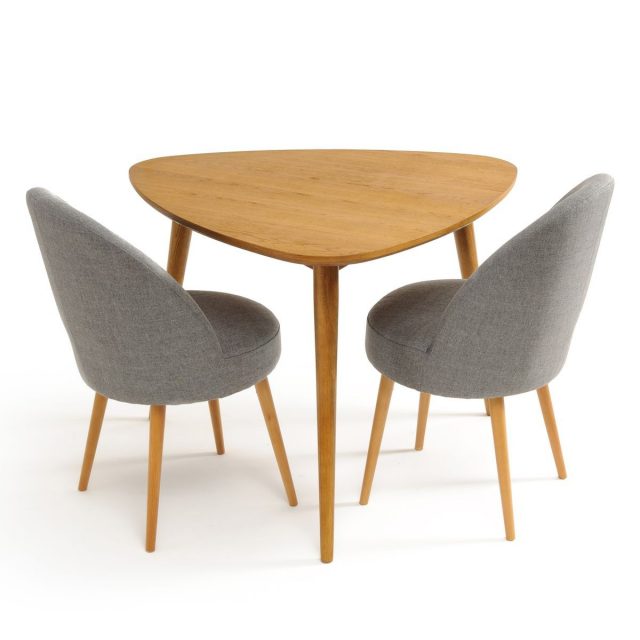 On passe ensuite sur un modèle radicalement différent avec une table en bois adaptée aux petites cuisines et au amateurs de décoration et de design. Son plateau triangulaire permet de recevoir 3 couverts et il est résolument différent des tables que l'on retrouve dans une cuisine généralement. Une table au design différent contribue à la déco, sans avoir à ajouter une tonne de petits accessoires.