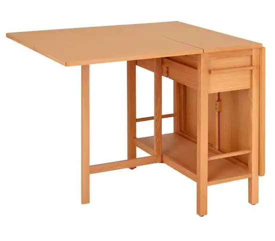 Dans la même idée que la table précédente, une autre table pliante, mais qui prend encore moins de place quand elle est pilée entièrement. On peut même imaginer s'en servir comme console dans la cuisine quand elle n'est pas utilisée.