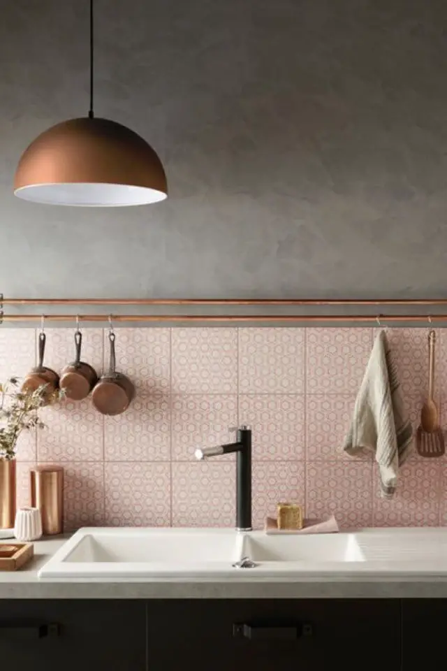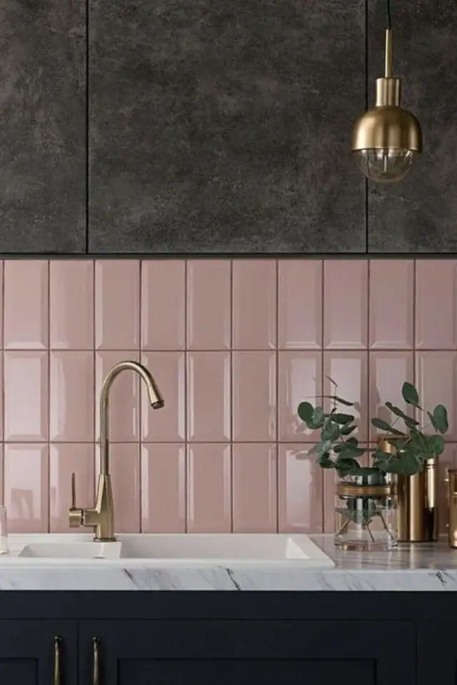 - Poser un carrelage rose pour la crédence