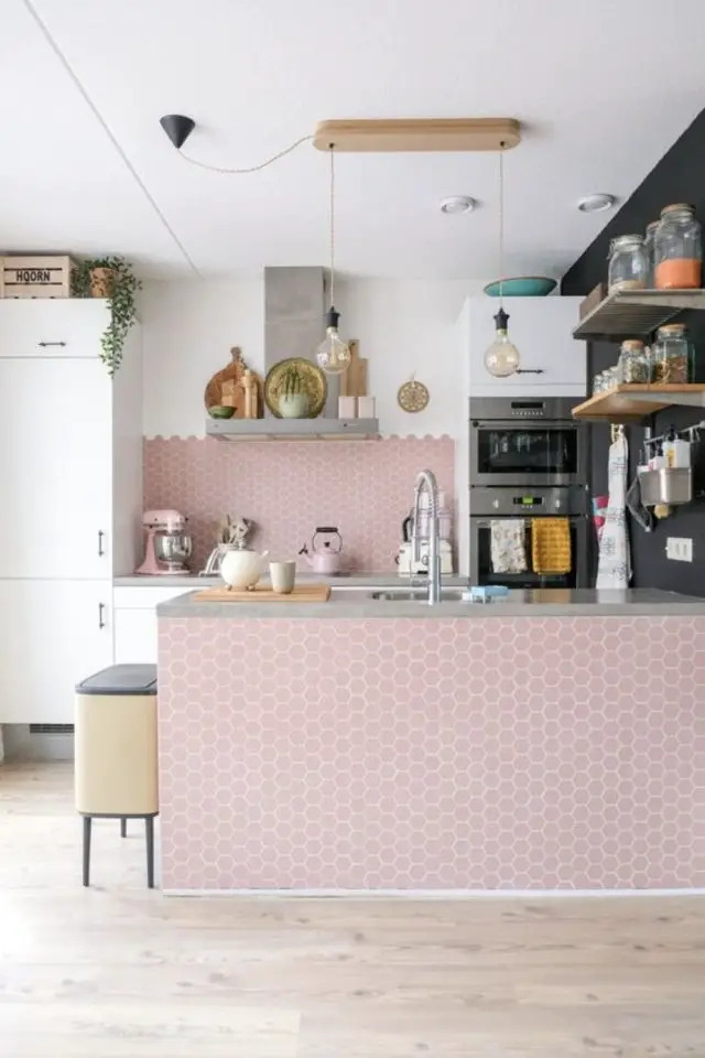 En petite touche, le rose est vraiment très joli dans une cuisine ! On adore !