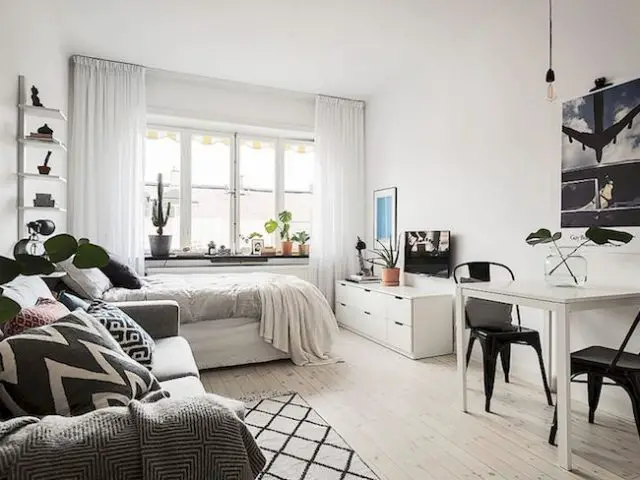 Jusqu’à présent, j’ai essentiellement parlé de mobilier mais quand on a son premier chez soi, on a envie aussi d’y mettre un peu de déco! On peut penser à un tapis pour délimiter le coin sommeil / salon du reste de la pièce. Même si les murs de votre appartement sont blancs, le tapis vous offrira la possibilité de mettre de la couleur et / ou des motifs. Les photos joliment mises en valeur en cas de coup de blues sont aussi déco et ne coutent pas un bras à mettre en oeuvre. Elles peuvent très bien décorer la porte d’entrée de votre studio. Enfin on pense pratique dans la salle de bain avec un sac en toile (du type Tot-bag) dans la salle de bain en tant que panier à linge, pour que ce soit pratique pour partir à la laverie!