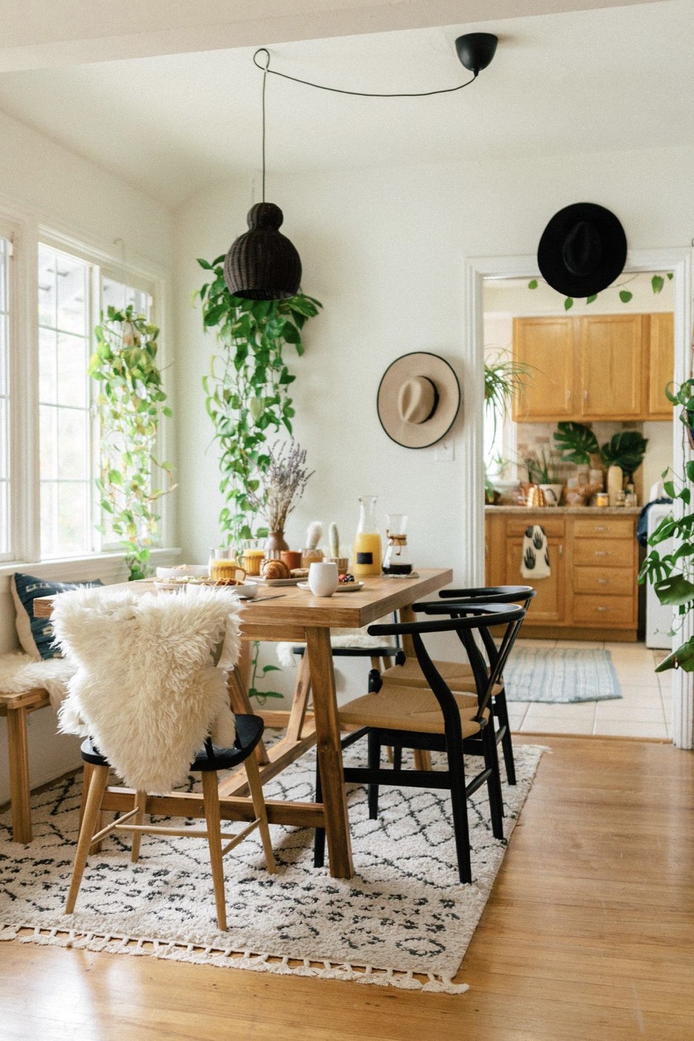 Des tapis venus d'ailleurs pour une salle à manger boho chic