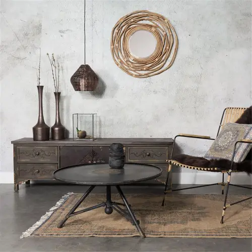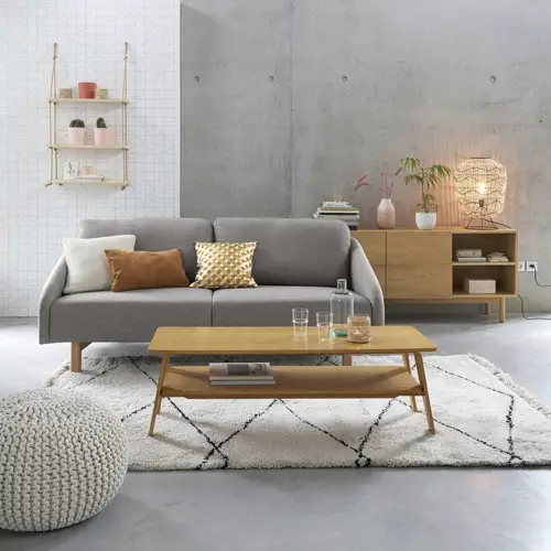 Niveau matériaux, vous avez l’embarras du choix pour votre table basse. Je pourrais consacré une dizaine d’articles uniquement sur les tables en bois. Le choix est vraiment vaste. Les tables en bois justement sont chaleureuses et authentiques, notamment quand le bois est naturel, juste protégé par une couche de vernis. On va retrouver les tables en bois dans les déco scandinaves évidemment, mais aussi dans les intérieurs tropicaux avec une table en rotin ou en osier tressé. Le bois se retrouve dans les intérieurs naturels, classiques même bohèmes. Toujours dans l’idée de retour aux sources, à des valeurs nobles. Sur la table basse, le bois peut aussi être peint. C’est top pour la recup’ ou pour ne pas avoir à acheter une nouvelle table. Idéal donc pour les petits budgets et les bricoleurs!Plus raffiné ou plus design, on peut penser à la table en verre. Visuellement, la transparence est intéressante à travailler. On peut par exemple mettre l’accent sur le tapis qui se trouve sous la table et que l’on verra grâce au verre. Il faut juste être attentif, la verre se raye facilement.Si vous aimez les intérieurs industriels par exemple, on peut imaginer une table en bois associé au métal. On voit aussi de plus en plus de tables basses en métal dans des styles plus contemporains. Certains modèles invitent au voyage. D’autres en revanche seront plus graphiques et plus féminins.Bien entendu, certaines tables basses mixent différentes matières. L’idée est de retrouver ailleurs dans votre décoration ces matières pour créer une certaine harmonie.