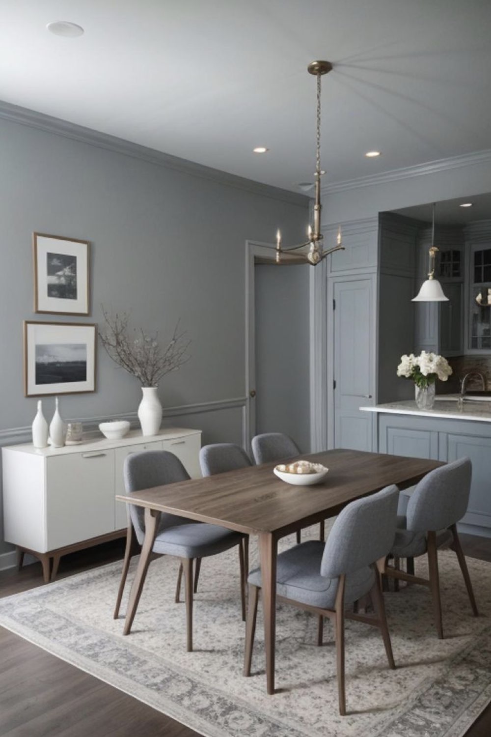 Si vous ne souhaitez pas faire des travaux de bricolage pour décorer votre salle à manger, rien ne vous empêche d'apporter une pointe de gris grâce à différents accessoires. Souvent, les textiles sont un bon allié pour décorer vite et bien. On peut donc penser à un tapis sous la table de salle à manger. On peut aussi changer les abats-jours des lampes pour un modèle gris en tissus. Ou encore, les doubles-rideaux qui habillent les fenêtres peuvent être changés!