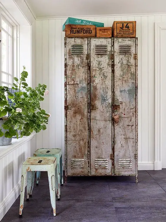 Il n'y a pas que le bois qui vieilli, le métal aussi. Selon l'époque de votre meuble, il y en a plus ou moins. Les meubles industriels par exemple sont composés largement de métal alors que des meubles plus anciens n'auront que la quincaillerie qui sera métallique. Selon le métal, la patine est différente. Elle ne se crée pas aussi facilement, elle n'a pas la même couleur. Le cuivre par exemple quand il s'oxyde devient du vert-de-gris alors que le fer rouille et devient orangé.