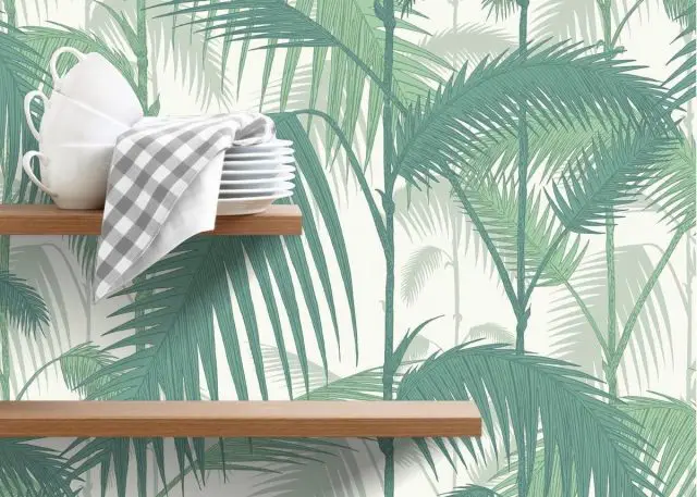 Mettre du papier peint dans la cuisine n'est pas interdit. Il faut juste veiller à choisir un papier qui soit adapté à la cuisine, c'est à dire un papier lessivable pour qu'au fil des années vous puissiez l'entretenir. Si vous avez un mur vide à l'opposé de votre pôle de cuisson par exemple, c'est idéal pour mettre du papier peint. Et ce qui est bien avec ce revêtement mural c'est qu'en quelques heures, cela transforme votre cuisine tout en apportant de la couleur et des motifs. J'ai déjà eu l'occasion à plusieurs reprises de vous parler des cuisines Urban Jungle. Si vous aimez les ambiances végétales, un papier peint imprimé avec de grandes feuilles exotiques, quelques petites plantes au dessus du frigo et le tour est joué!