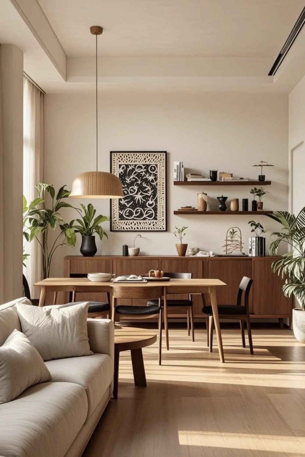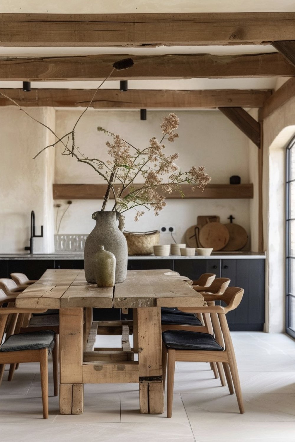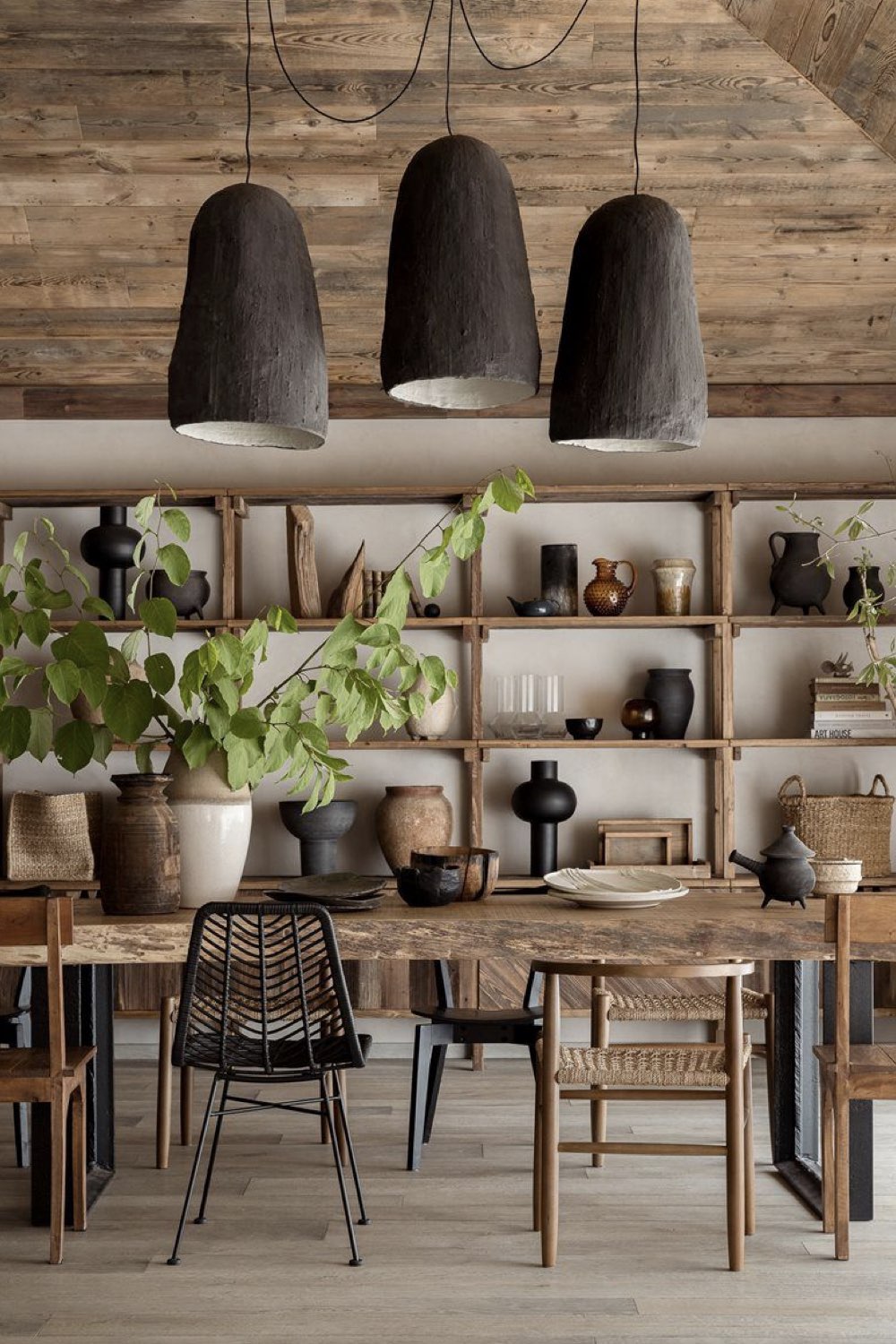 Une table en bois au coeur d'une salle à manger nature