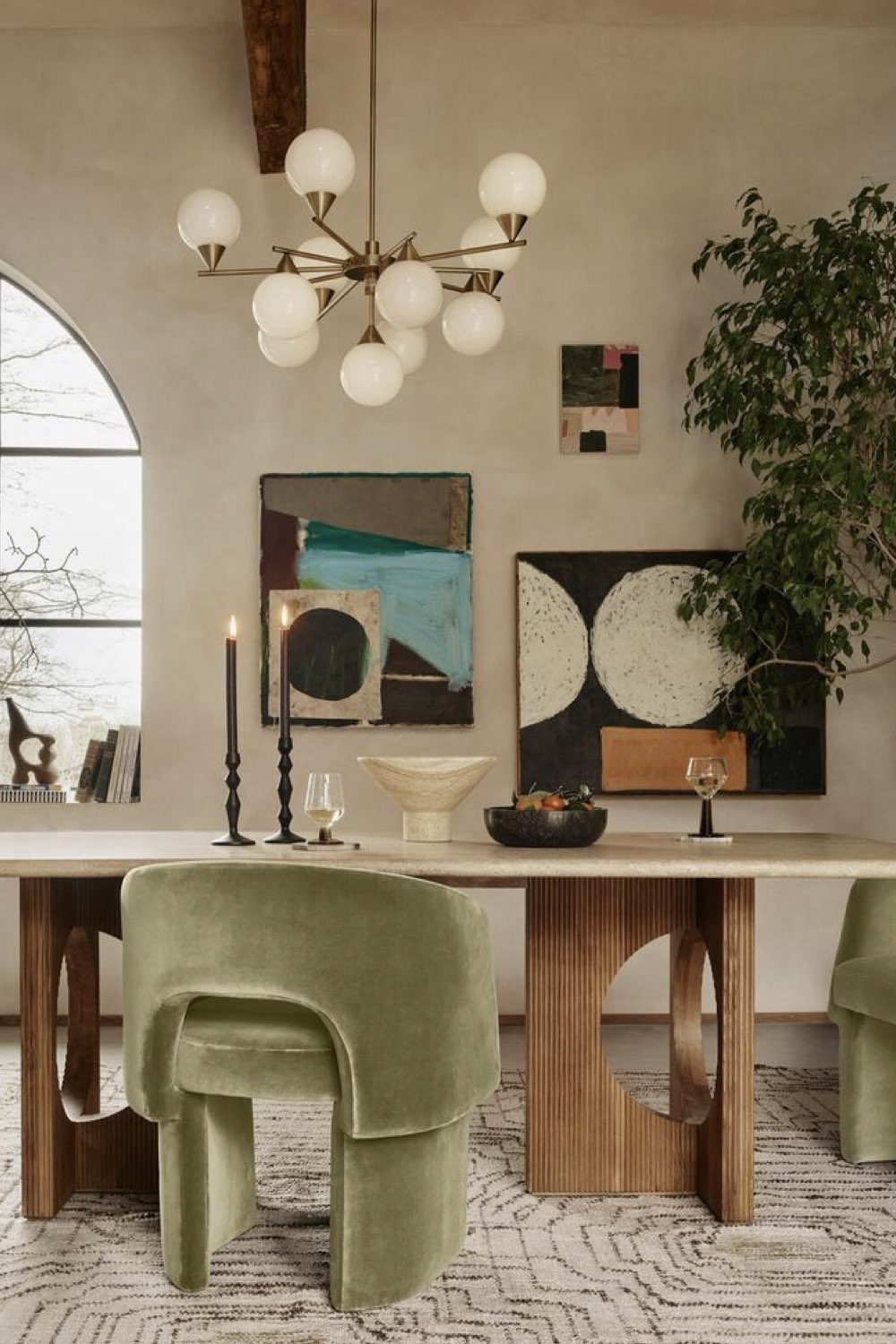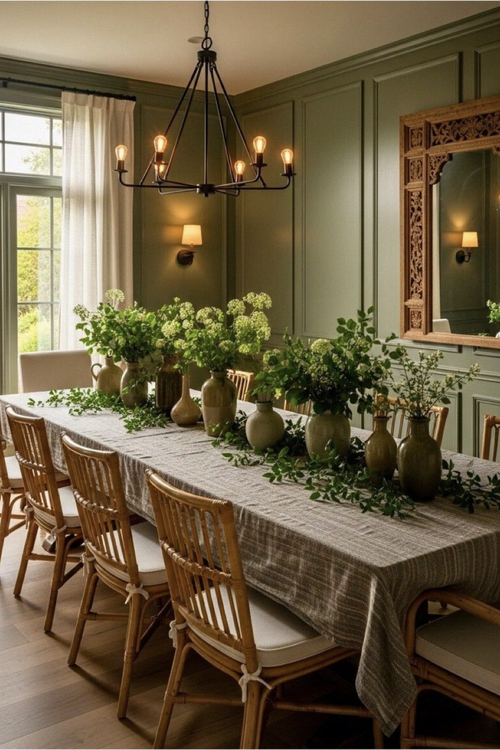 Pour le moment, on a parlé de matières et de matériaux, mais peu de couleurs. Même si la tendance ces dernières années est au blanc, rien ne vous empêche de mettre de la couleur sur les murs ou sur les textiles qui composent votre déco de salle à manger. Toute la palette des couleurs organiques sont à votre disposition: On peut évidemment penser au vert qui est indubitablement lié à la notion de nature, un vert poudré et délicat.