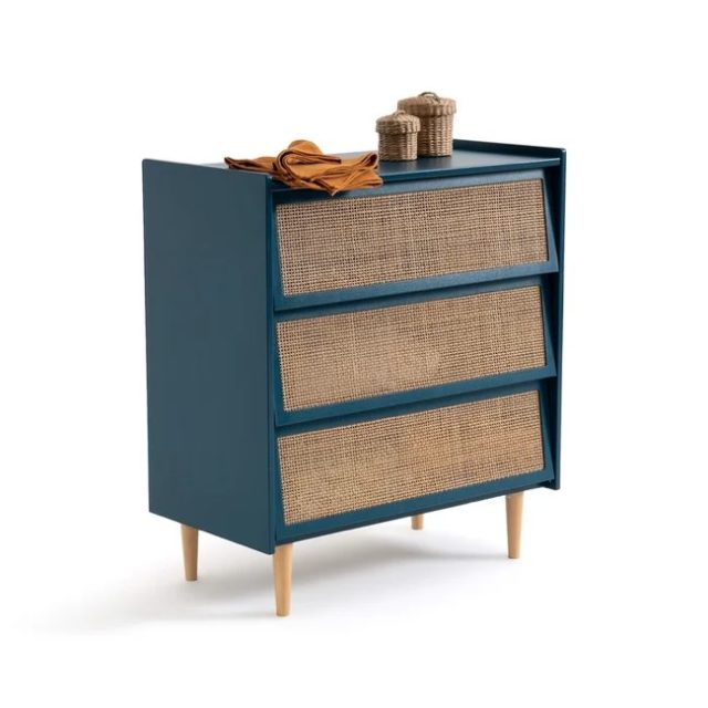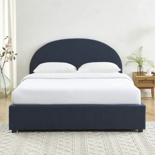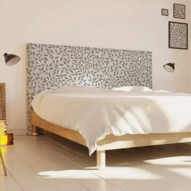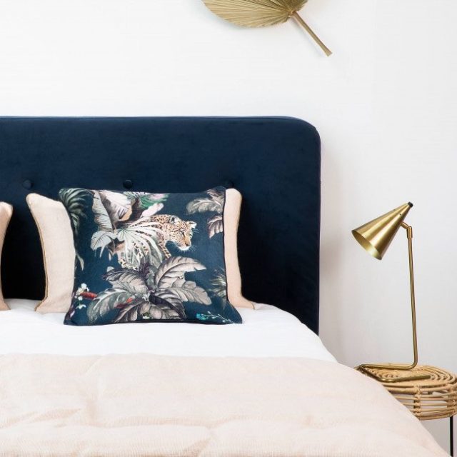 Si vous avez actuellement une tête de lit en bois, il est tout à fait possible de la peindre en bleu. Dans ce cas, vous aurez un choix infini quant à la nuance de bleu à choisir. En version beaucoup plus classique, on peut faire le choix d'une tête de lit recouverte de tissus bleu.