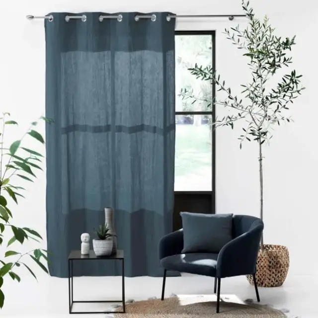 Les accessoires de décoration peuvent aussi se revêtir de bleu. Dans une chambre à coucher, il est souvent question de textile, en commençant par la parure de lit. On peut aussi imaginer apporter une touche de bleu dans les rideaux et les stores et pourquoi pas sur les descentes de lit. A motif ou uni, c'est une question de goût. J'aime le bleu uni notamment sur le lit, il crée une espèce de cocon dans lequel on a envie de s'enrouler et y rester. Les motifs, c'est très intéressant quand on a une décoration de chambre sobre et qu'on a envie de lui apporter un peu de nouveauté.