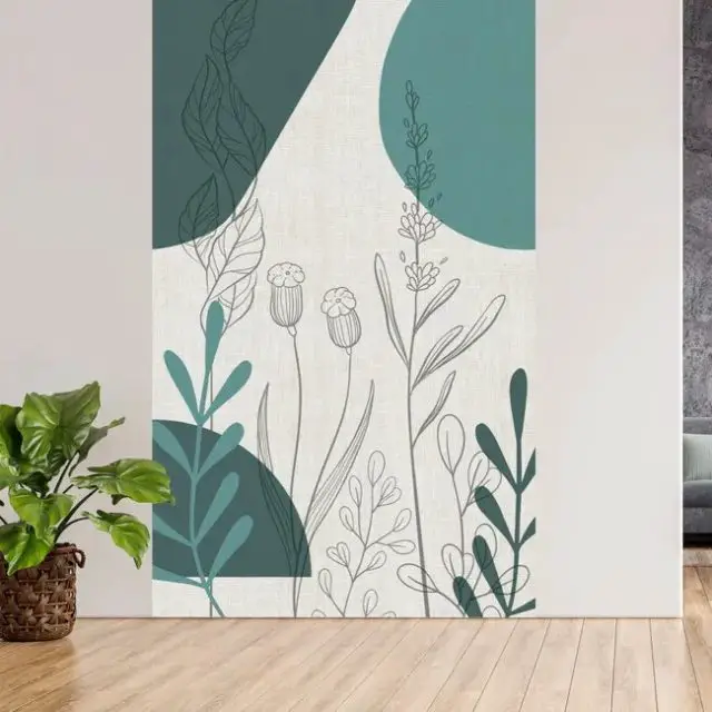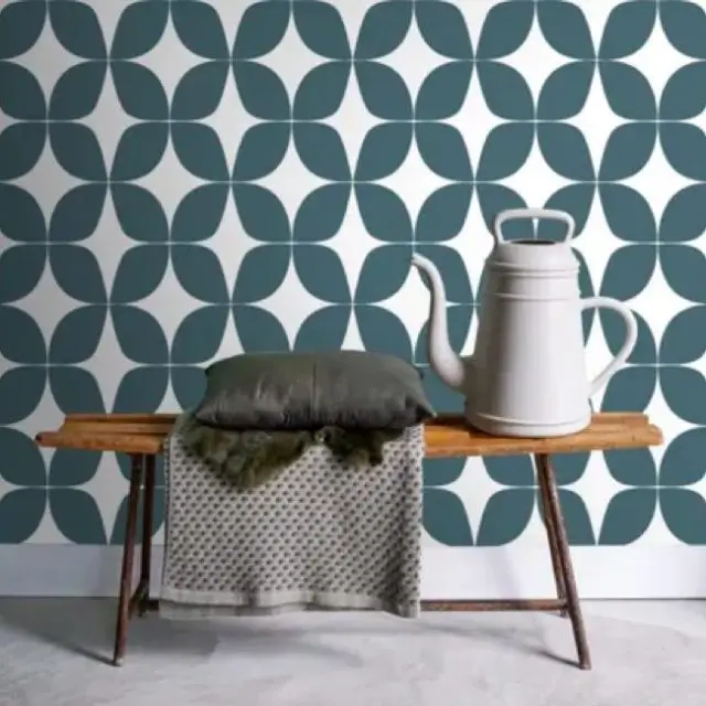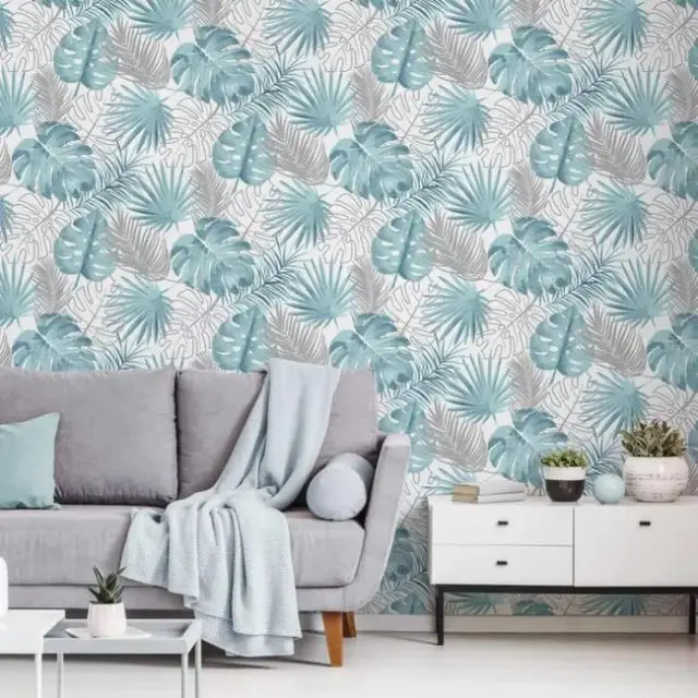 On peut aussi opter pour la création d'un soubassement bleu avec sur la hauteur du blanc ou du gris. Un mélange classique qui donnera une certaine vie à votre pièce tout en gardant de la fraicheur. Le papier peint quant à lui vous permettra d'apporter des motifs dans le bleu des murs. Les motifs géométriques simples sont toujours aussi tendance et utile pour créer un univers jeune et moderne.