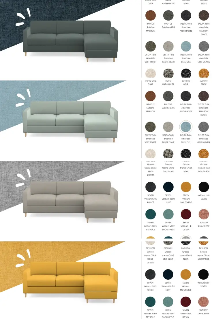 Le seul bémol que j'ai trouvé, c'est au niveau des couleurs. Il n'est possible de choisir qu'une seule couleur pour l'intégralité du canapé. Moi qui voulait me taper un trip avec un canapé un peu original au niveau matière et couleur, je me suis sentie un peu beaucoup freinée dans ma démarche. J'aurais aimé pourvoir choisir une couleur / matière pour les coussins séparément de la base du canapé. Donc si vous souhaitez un canapé uniforme, So Me répondra à vos attentes. Pour plus de folie, ce n'est pas tout à fait ça!