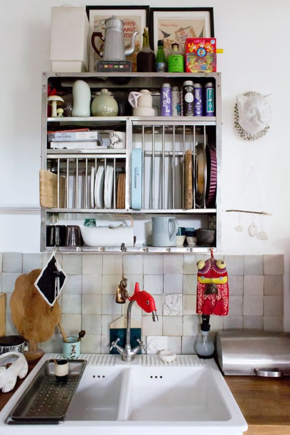 Je suis de retour en Inde depuis plusieurs semaines maintenant. Et il y a un truc qui nous plait ici dans la cuisine, c'est l'étagère indienne. En métal, assez simple, elle permet de ranger le nécessaire pour faire à manger et servir. Ici, on pose la vaisselle qu'on vient de nettoyer sans l'essuyer directement sur l'étagère. C'est simple mais terriblement efficace. (Et le jour où on pose nos sacs quelque part, il y aura forcément ce type d'étagère dans notre cuisine!)