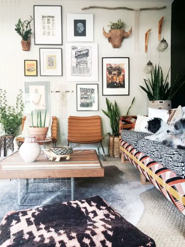 C'est l'une des solutions que je préfère parce que ça ne représente pas une tendance mais votre personnalité. Vous choisissez les illustrations, pochettes de vinyles, affiches de ciné, cartes postales, etc. selon ce qui vous parle et cette ensemble donne une décoration complètement unique qui a du sens dans votre foyer. C'est une manière très ludique d'habiller un mur et c'est déclinable à l'infini. Difficile de s'en lasser.