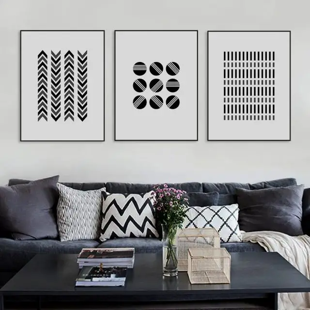 Le noir et blanc n'est pas forcément fade... Il peut être une jolie manière de décorer un mur sans trop d'artifices, voire de manière minimaliste. On peut évidemment penser à des photographies en noir et blanc qui donnent un côté intemporel aux moments photographiés. On peut aussi partir sur des motifs géométriques qui offrent un aspect plus rigoureux ou du moins cadré. L'idée ici est surtout de casser la monotonie d'un mur qui vous semble trop blanc et trop froid grâce à un encadrement simple noir. Pas de chichis, de la simplicité avant tout.