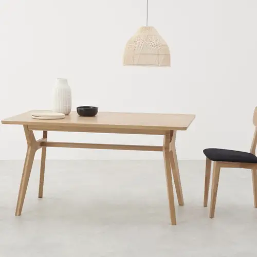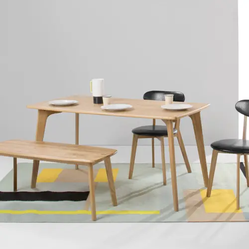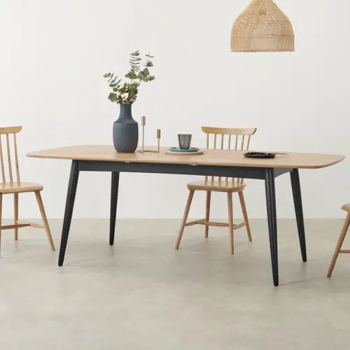 - La table rectangulaire en bois pour la famille. Le bois est tendance depuis que le style scandinave s'est invité dans nos intérieurs. Il est synonyme de convivialité mais aussi de robustesse et c'est intéressant quand on a des enfants.