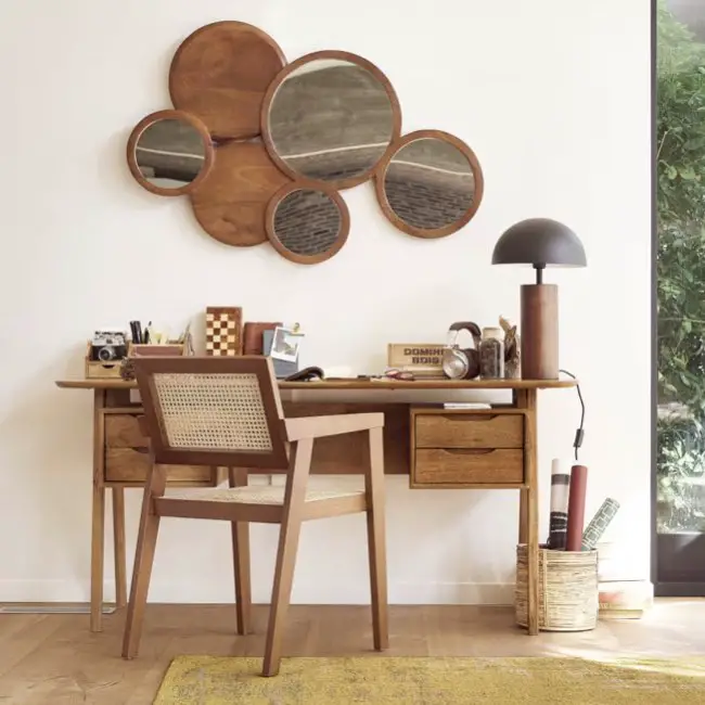 On reste plus ou moins dans l'idée de luminosité avec le reflet dans l'écran d'ordi. C'est un peu comme la télé dans le salon. Il faut placer l'écran de manière à profiter de la luminosité extérieure et ne pas l'avoir dans le dos pour ne pas avoir de reflet. Même si maintenant certains écrans sont équipés de systèmes pour limiter les reflets, autant faire en sorte de ne pas être dérangé. On va aussi éviter d'être ébloui(e) par la lumière. Selon l'orientation de votre pièce, il vous sera peut-être impossible de placer le bureau face à la fenêtre sans rideaux.