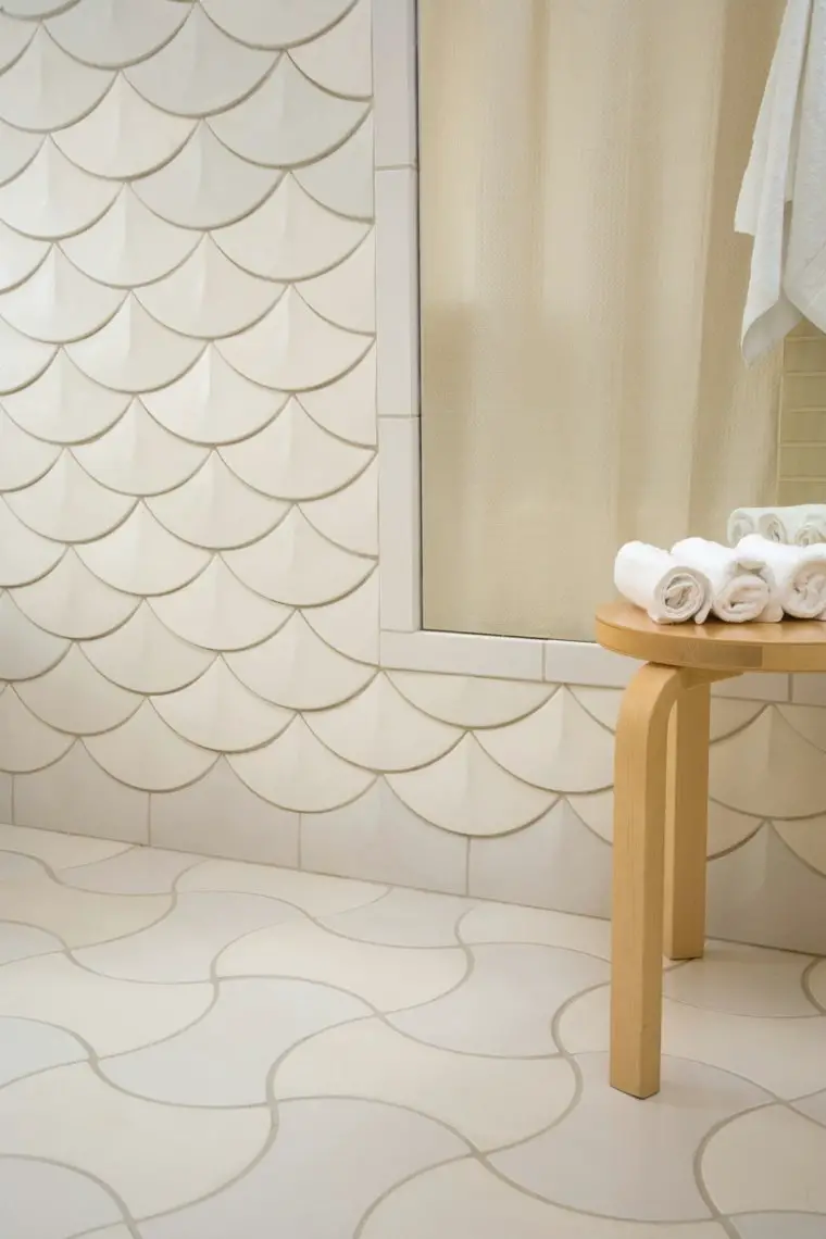 - Son volume - le carrelage peut être en 3D et créer un effet de volume sur les murs. C'est probablement celui qui m'attire le moins parce que j'y vois une certaine complexité à le nettoyer, notamment pour la crédence ou l'espace douche qui sont des espaces qui se salissent relativement vite. Perso, je n'ai jamais aimé passer des heures à nettoyer la douche même si j'ai déjà eu un appart avec du carrelage en volume. (Je vous assure, ça m'a gonflé!)