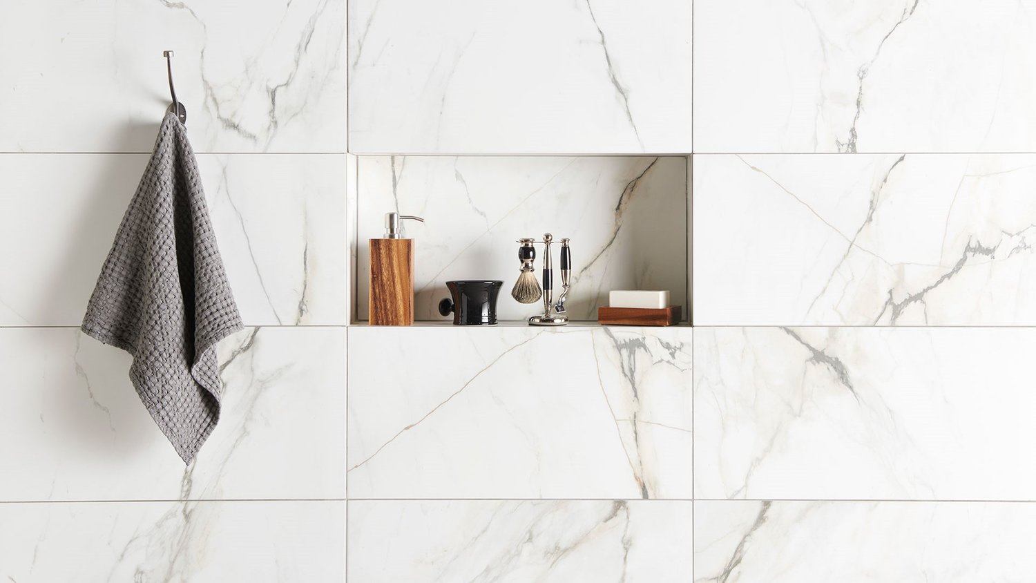 - Sa taille - c'est plus flagrant au sol, mais au mur on peut aussi jouer la carte de l'originalité grâce à la taille du revêtement. Le petit format, on le connait avec la mosaïque par exemple. Elle est souvent vendue en filet pour faciliter la pose. Le très grand format est plus rare parce que sa pose est plus délicate. (Mieux vaut faire appel à un pro). Et pour certaines matières / motifs comme l'effet marbre, c'est plus esthétique de l'avoir en grand format!