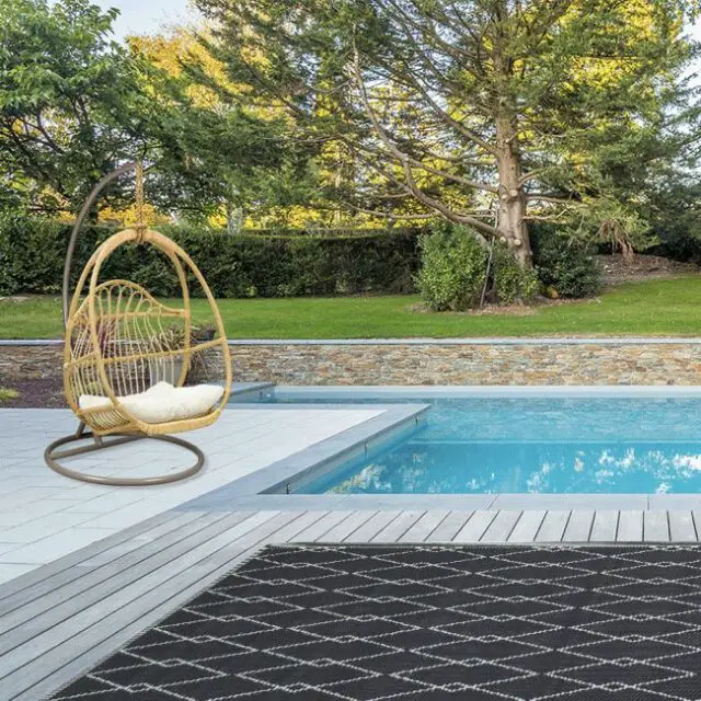 Il y a une dizaine d'années, on a vu fleurir de nouveaux salons de jardin, bien plus sympas que le combo chaises et table en plastique blanc ou vert. Souvent, peu importe la gamme de prix du salon de jardin, il était gris. Si vous avez ce type de mobilier extérieur, vous pouvez le compléter tout en restant dans la même veine en gardant cette couleur pour votre fauteuil suspendu.