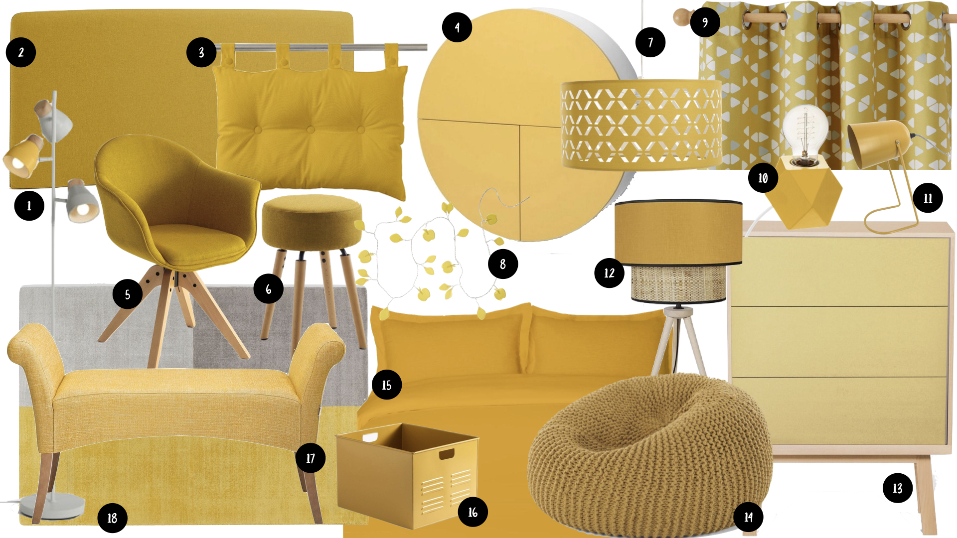 Perso, j'ai quand même une attirance certaine sur un jaune franc quitte à l'utiliser avec parcimonie. Le jaune moutarde date de quelques années mais reste toujours tendance et il y a aussi le jaune safran ou le jaune curry qui sont des nuances chaleureuses sans être criardes.. Les nuances plus claires favorisent l'endormissement et sont souvent synonyme de style champêtre. Par petite touche, le jaune tendre donnera un style authentique, voire noble à votre chambre. Le jaune pastel est rétro sans aucun doute, il renvoie aussi aux intérieurs nordiques et scandinaves.