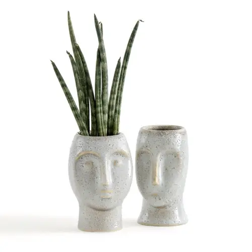 - Cache-pot en grès marron, blanc et noir - Maisons du Monde