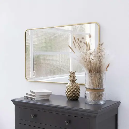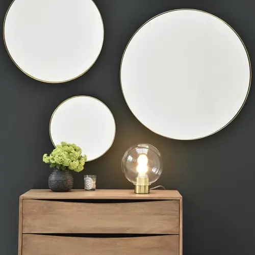 Poser un miroir sur le mur au dessus d'un meuble, que ce soit un meuble à chaussures ou une console, permet d'habiller le dessus du meuble et ne pas avoir un espace qui semble trop vide. Il y a aussi un côté pratique au quotidien, le miroir permet de vérifier son apparence avant de sortir de la maison. En ce moment, la tendance est au miroir rond avec un encadrement épuré. On peut aussi trouver d'une manière plus classique un miroir rectangulaire qui comblera plus l'espace au mur. Si vous optez pour un petit miroir, il peut être associé avec des cadres photos ou encore les plantes grimpantes.