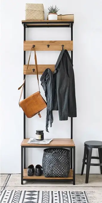 On a parlé de chaussures, ce ne sont pas les seuls objets à ranger dans l'entrée. Il y a aussi les vestes et manteaux. On peut penser aux patères accrochées au mur. On peut choisir aussi un vestiaire pour ranger les vêtements extérieurs du quotidien. Certains modèles sont assez épurés et fonctionnels. Cela vous permet de ne pas surcharger votre espace. Même si vous avez peu de place, ce type de meubles d'adapte. Le plus difficile est de ne pas le faire disparaitre sous une pile de manteaux en plein hiver. Ne gardez que ce qui vous sert au quotidien.