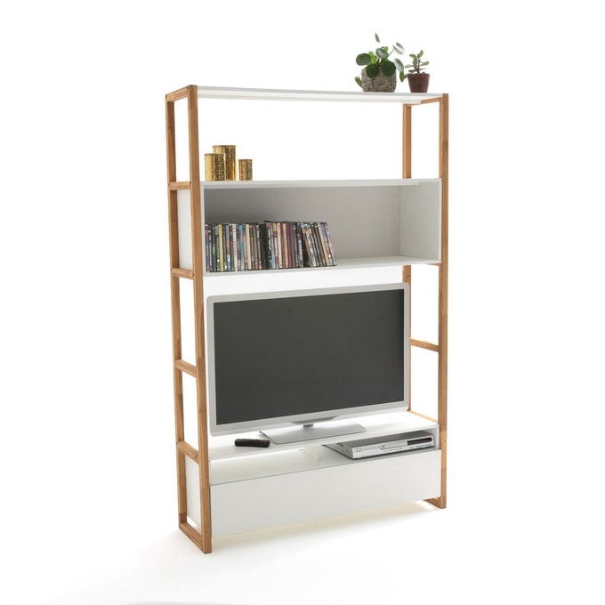 Le meuble télé avec des rangements intégrés pour ne pas perdre de place